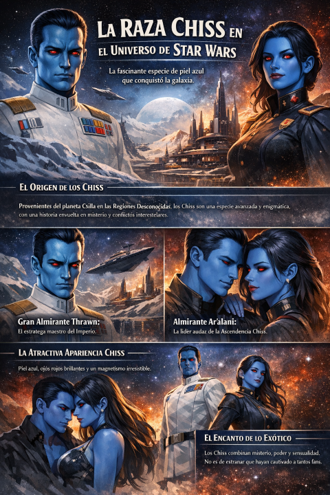 En el vasto tapiz de galaxias de Star Wars, pocas razas despiertan tanta fascinación y respeto como los Chiss. Originarios de los confines de las Regiones Desconocidas, estos humanoides de piel azulada no solo son conocidos por su brillantez táctica, sino por un aura de misterio y una estética que raya en lo hipnótico.